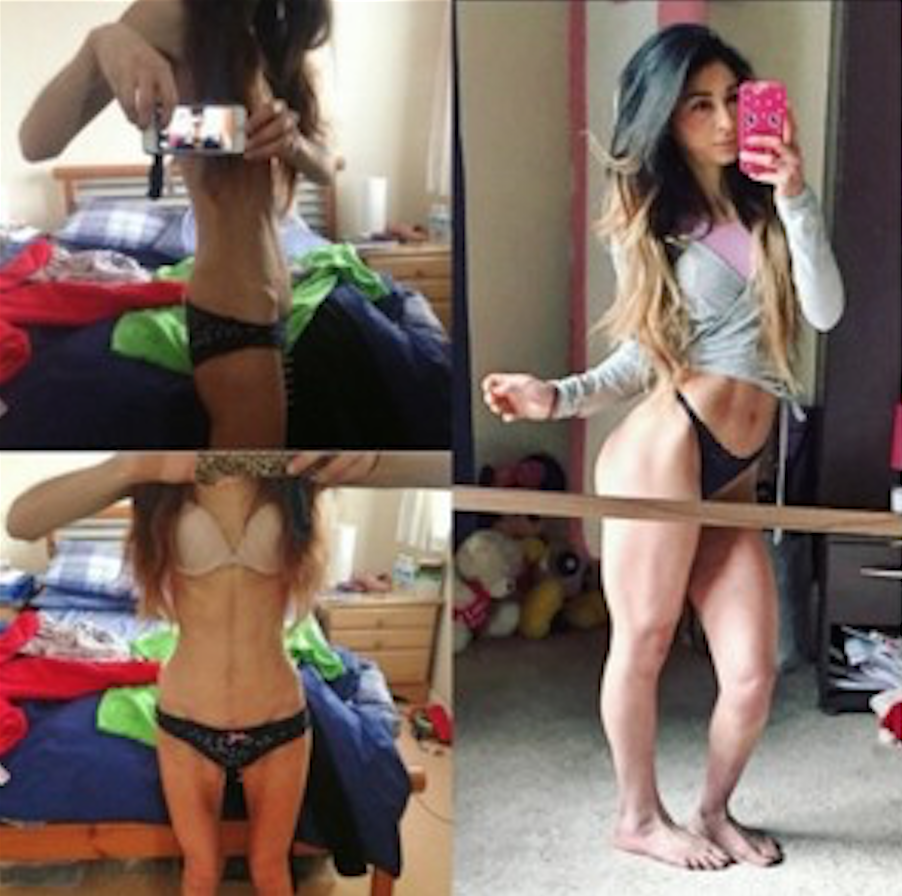Las imágenes, que ella misma ha compartido en Instagram, hablan por sí solas. De padecer anorexia en estado crítico, a ser entrenadora personal y una apasionada al deporte.